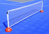 A portable, compact, and easy to store floor tennis set that can be set up or taken down quickly. Simply slide the lightweight steel support rods through the top and side taping, and insert the vertical rods into sand-filled Multi-Domes®. The result is straight, perfect net tension. Use with shuttlecocks, plastic, inflatable, or foam balls. 10 ft. long x 30 inches high; 2” taping with 7/8” mesh. Nets are 10’ L x 2 1/2’ H. Use full size Multi-Domes for necessary weight support. Multi-Domes® sold separately.
