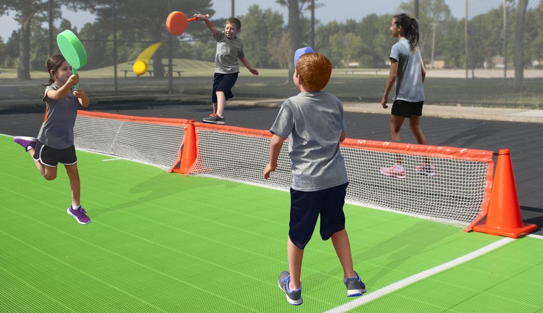 The ideal "small court" net sets up quickly and functions with all cones. Segmented light-weight steel poles pressure-lock together and slide inside the top-taping of the net. Just drape the end adjustable loops over cones and let the paddle tennis begin! Use with foam, plastic, table tennis balls and shuttlecocks. Net length is 18'x 9" H. Includes instructions and nylon carrying bag. New Double Net just requires the insertion of a center cone. Add as many nets as needed all the way across your gym or playground!